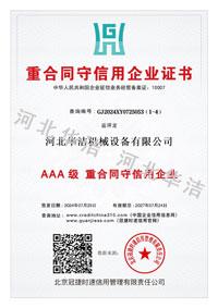 - 企業信用等級:榮獲AAA級企業信用等級證書,并被評為“AAA級重合同守信用企業”“機械設備行業AAA級誠信單位”,彰顯了在行業內的高度信譽與公信力。